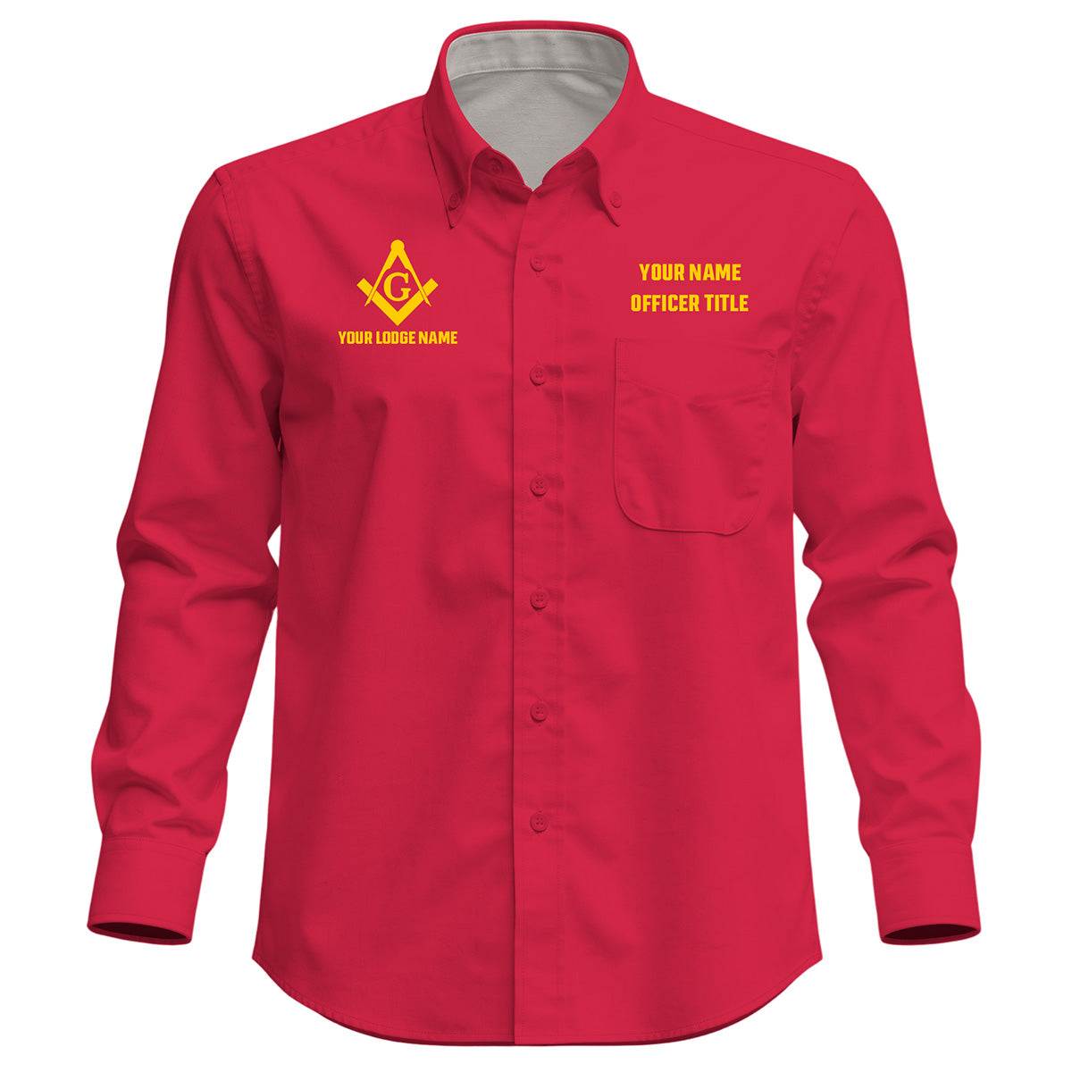 Represent the Craft with distinction in this premium long-sleeve button-down shirt, featuring your favorite Masonic emblem expertly embroidered on the left chest.