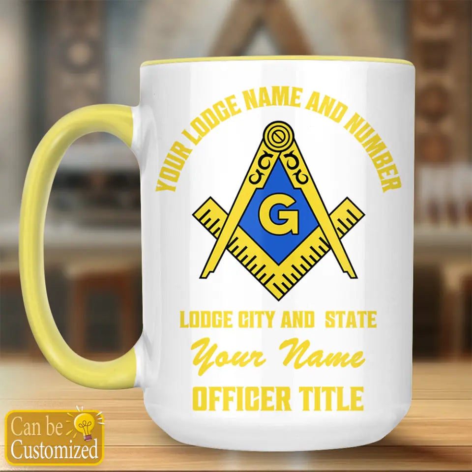 Elevate your beverage experience with our Custom Masonic Accent Two-Tone Mug, designed specifically for the discerning Freemason. This 15 oz. mug is perfect for your morning coffee, afternoon tea, or evening hot cocoa.
