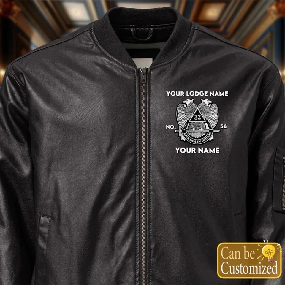 Custom 32nd Degree Scottish Rite Masonic Leather Bomber Jacket