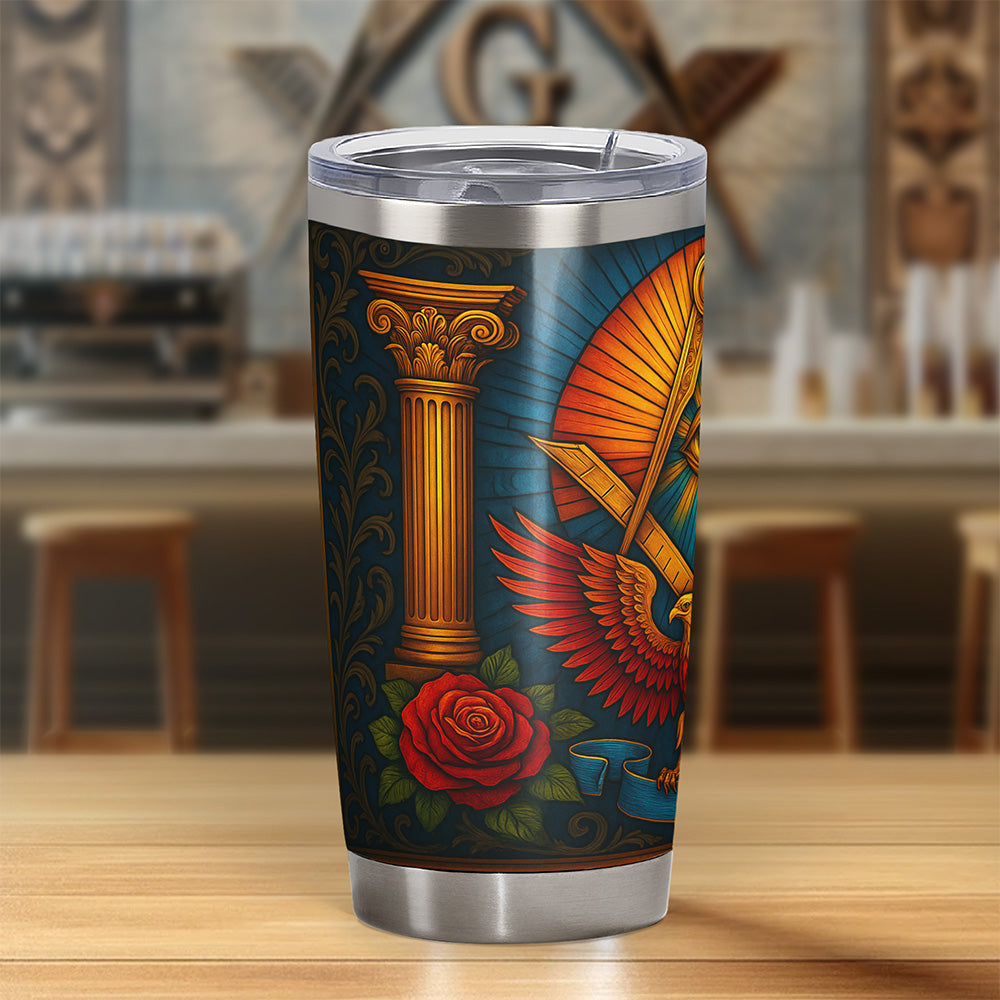 Elevate your beverage experience with our exclusive Masonic 20oz Tumbler, a symbol of unity and craftsmanship. Designed for the Freemason, this tumbler seamlessly blends tradition with contemporary utility. Its robust stainless steel construction and double-wall vacuum insulation keep your drinks at the perfect temperature, whether hot or cold, while showcasing vibrant color reproduction on a full edge-to-edge imprint with a stainless steel base.