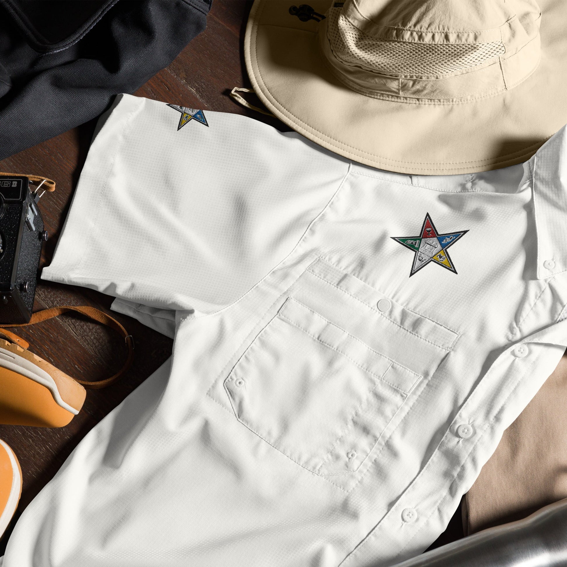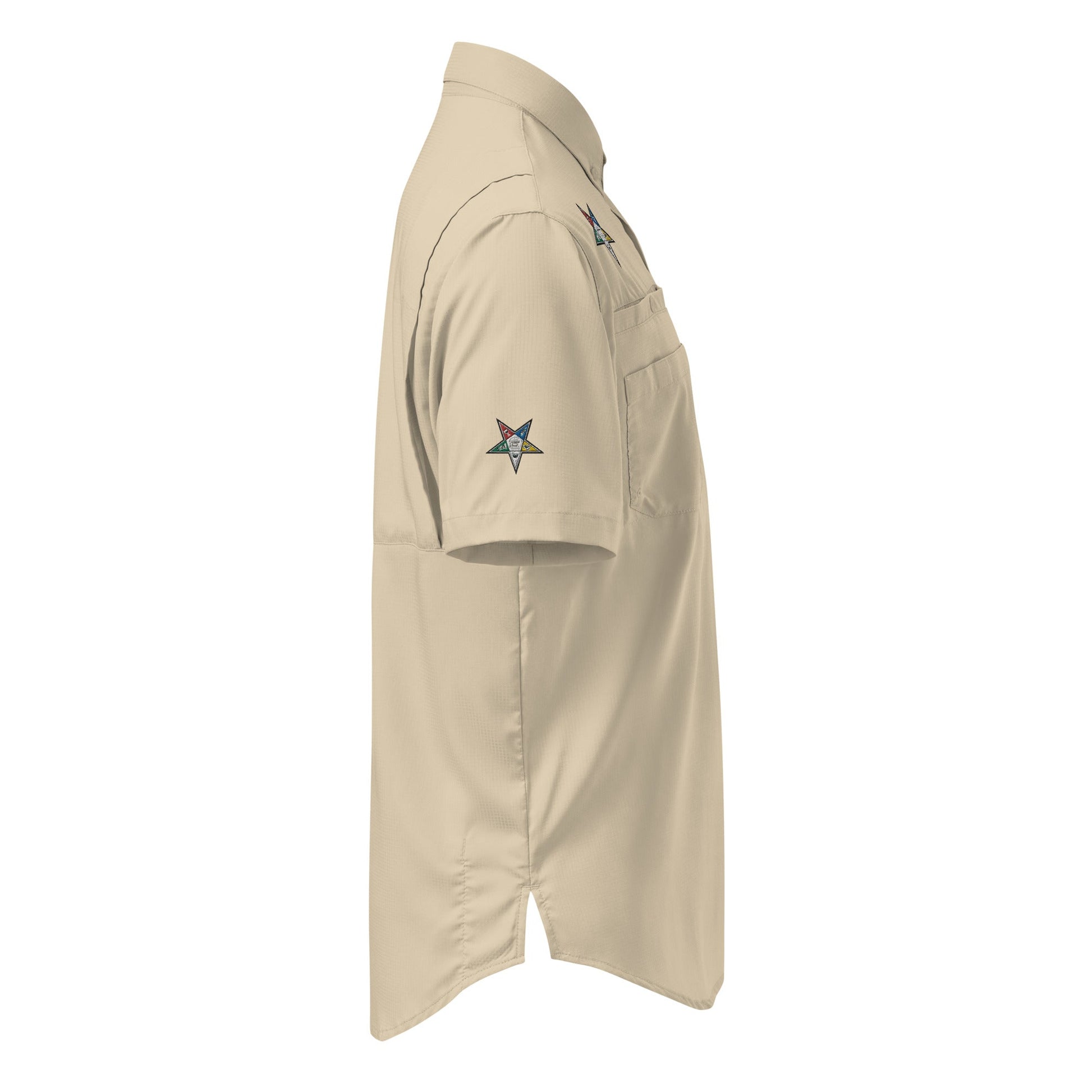 Embrace the outdoors with Masonic pride and unbeatable comfort! Our Masonic-themed Columbia short sleeve button shirt features expertly embroidered symbols, perfect for Freemasons who love adventure. With Omni-Wick™ technology to keep you dry and cool, UPF 40 sun protection, and smartly designed pockets and loops, this shirt offers both quality and functionality for your Masonic journeys.
