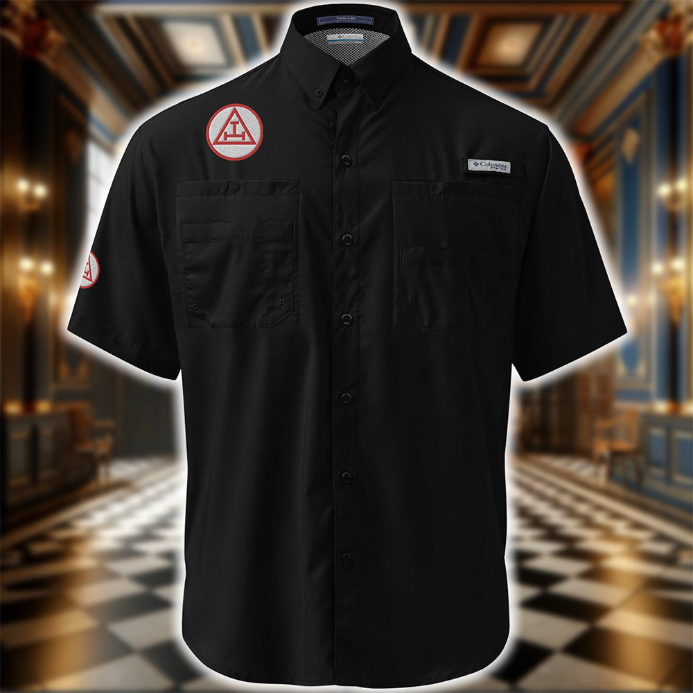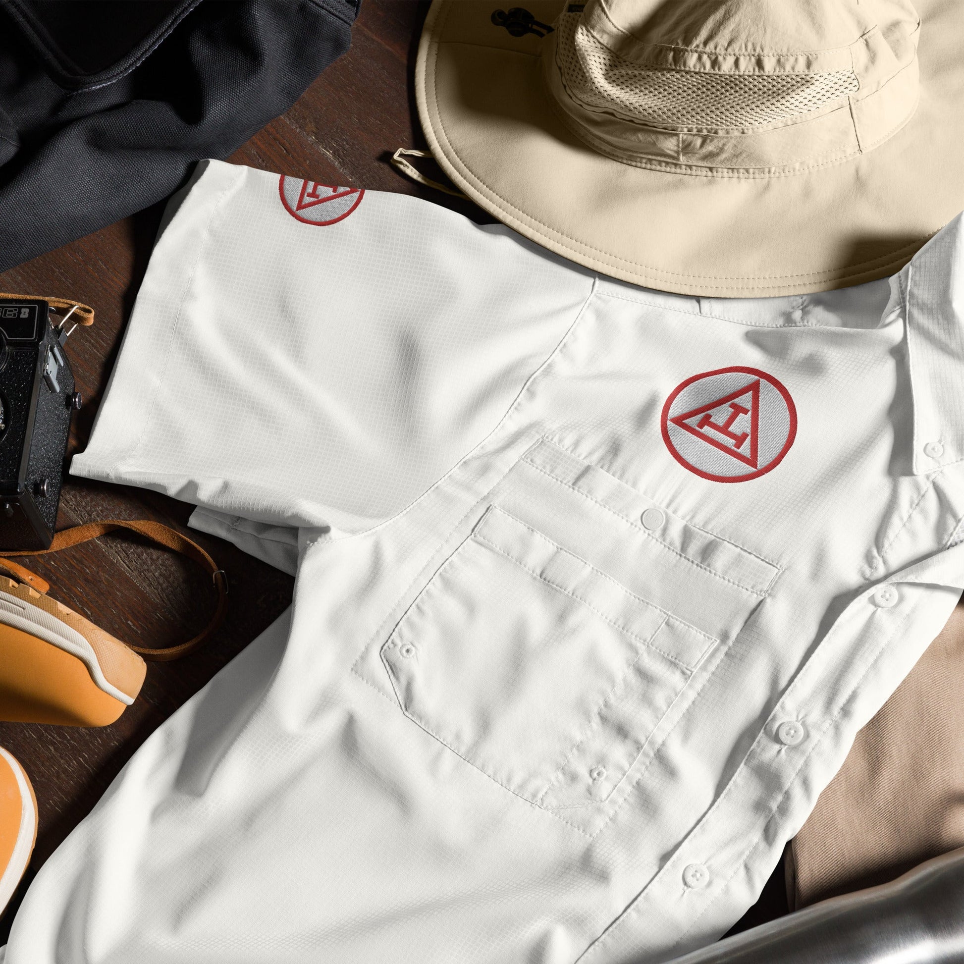 Embrace the outdoors with Masonic pride and unbeatable comfort! Our Masonic-themed Columbia short sleeve button shirt features expertly embroidered symbols, perfect for Freemasons who love adventure. With Omni-Wick™ technology to keep you dry and cool, UPF 40 sun protection, and smartly designed pockets and loops, this shirt offers both quality and functionality for your Masonic journeys.