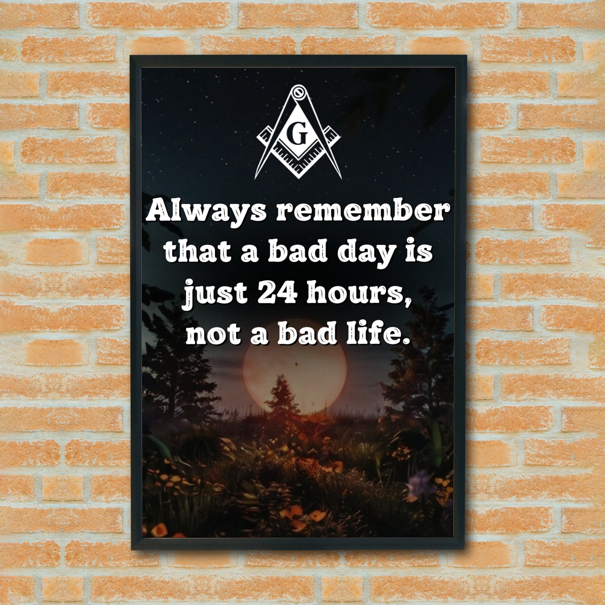 This serene Masonic poster blends the symbol of the Square & Compass with a glowing sunrise and a comforting quote to uplift any Brother facing trials: